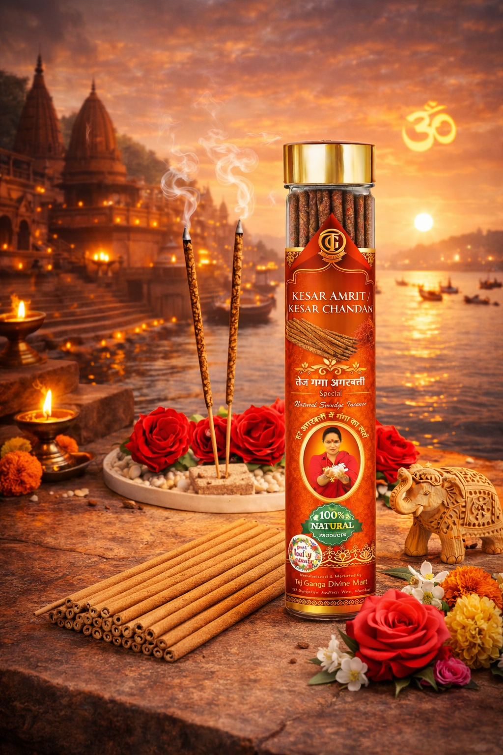 Tejaswini Ganga Kesar Amrit Kesar Chandan Agarbatti is a divine blend of tradition, purity, and premium fragrance, created to elevate your spiritual experience. Inspired by the sacred rituals performed on the ghats of the holy Ganga, this incense combines the richness of saffron (kesar) with the calming essence of sandalwood (chandan), two ingredients deeply rooted in Indian spiritual heritage.